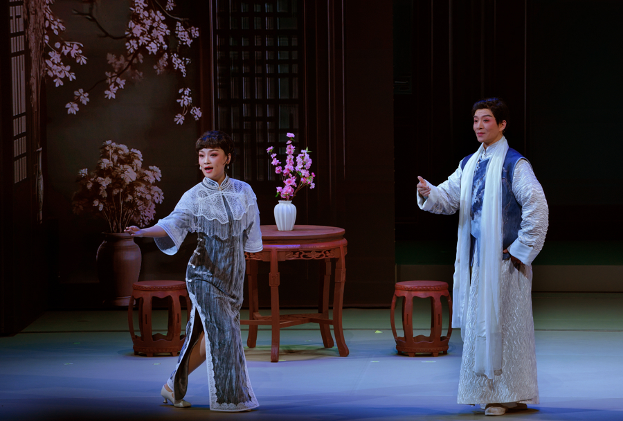导演伊天夫的舞台呈现同样获得高度评价。虚实结合的大屏运用、层次细腻的灯光设计、江南雅致与民国风韵交融的视觉美学,为这部悲剧赋予了诗意的质感。著名导演滕俊杰看到,这是XR(扩展现实)在舞台上的新运用,从头到尾完整用视频的方式,结合剧情内容,一气呵成,“整台演出具有电影的质感和画面的诗意,凄美而隽永”。